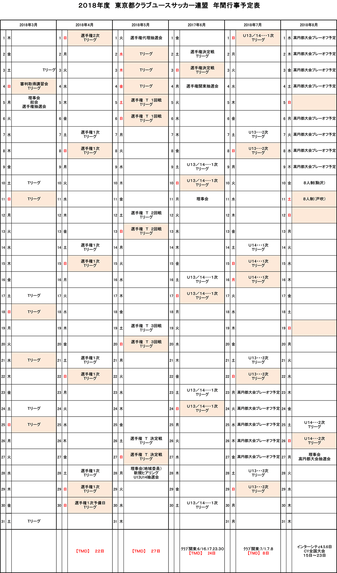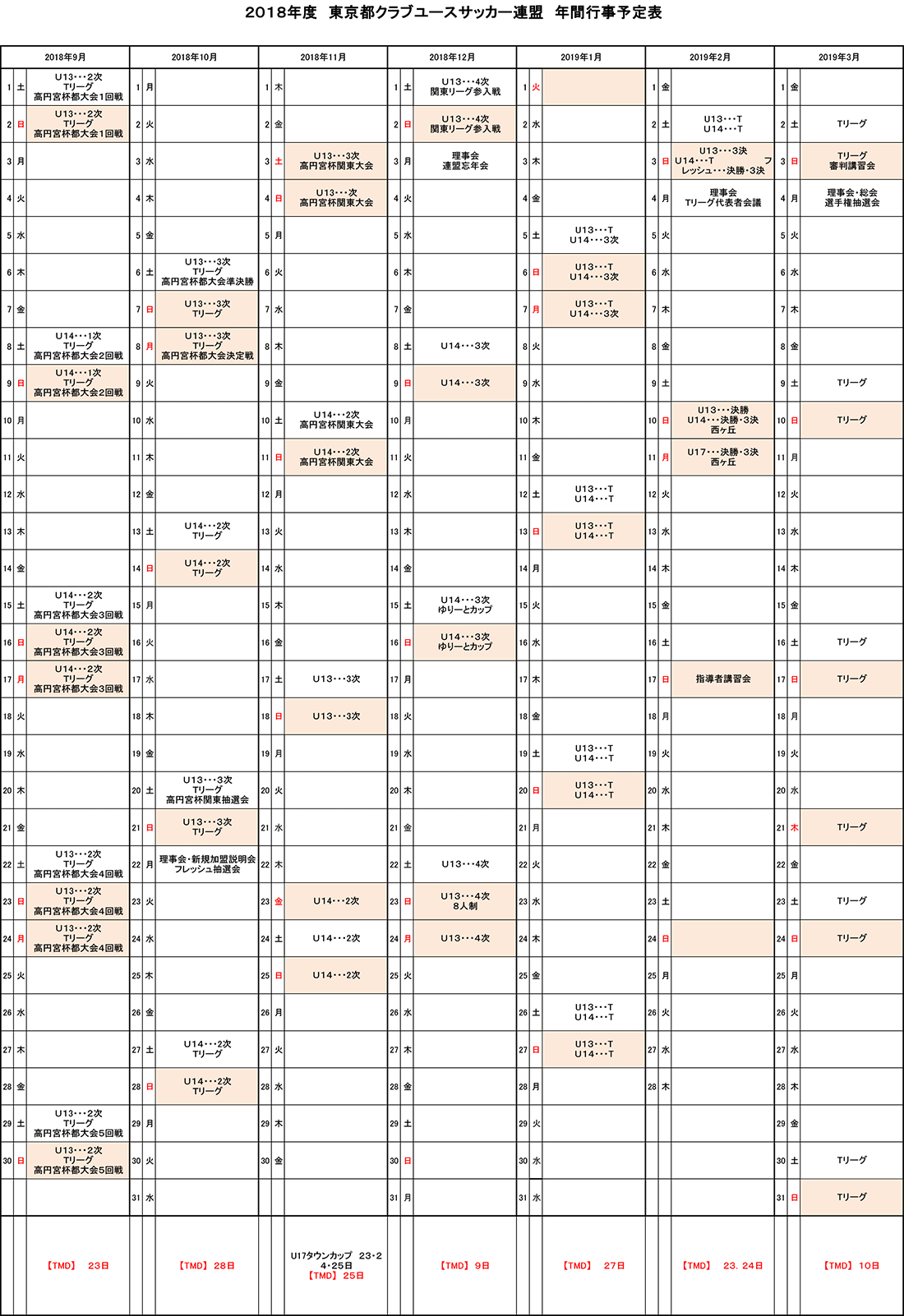 ジュニアユース 年間予定表
